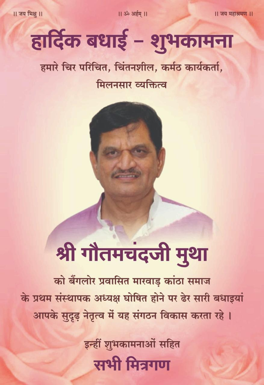 गौतमचंदजी मुथा बने मारवाड़ कांठा समाज के संस्थापक अध्यक्ष मारवाड़ काँठा समाज